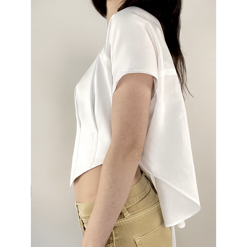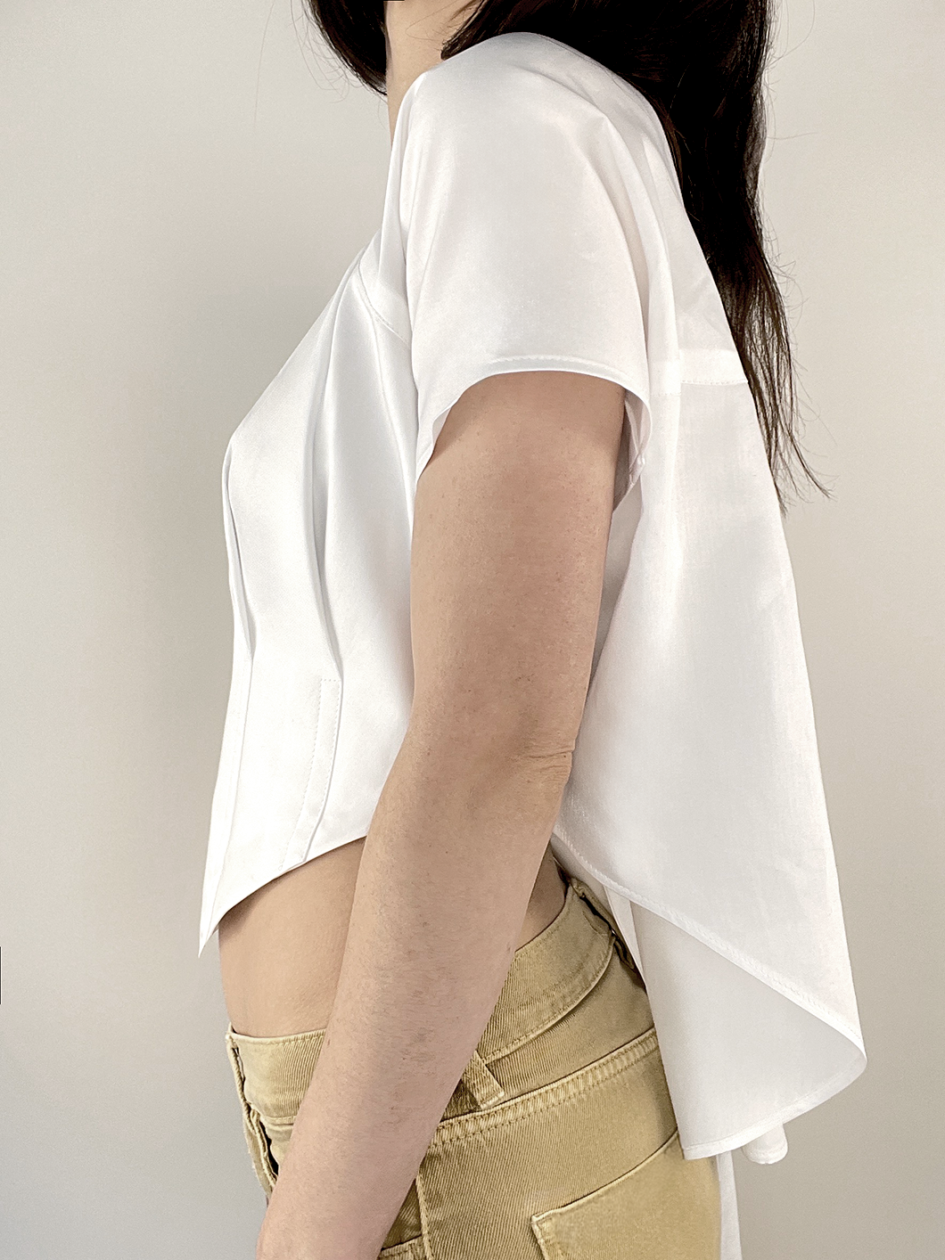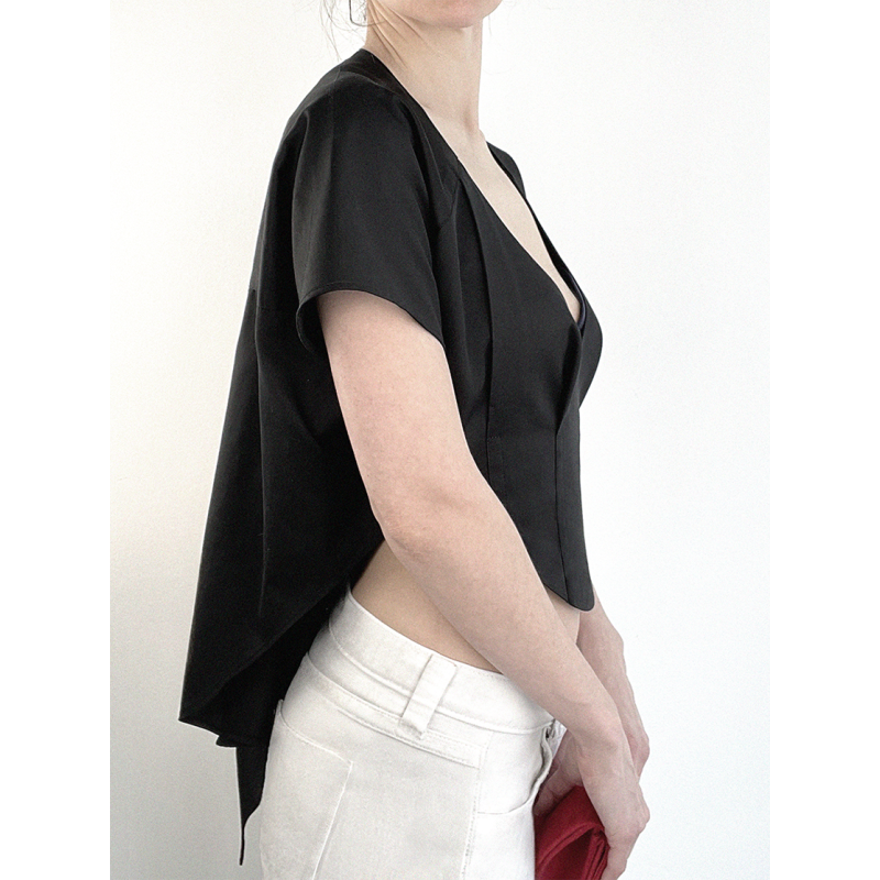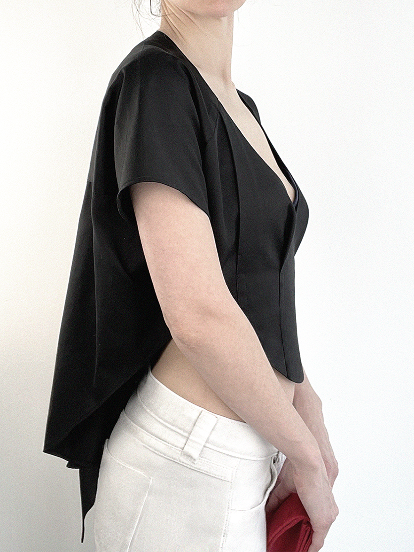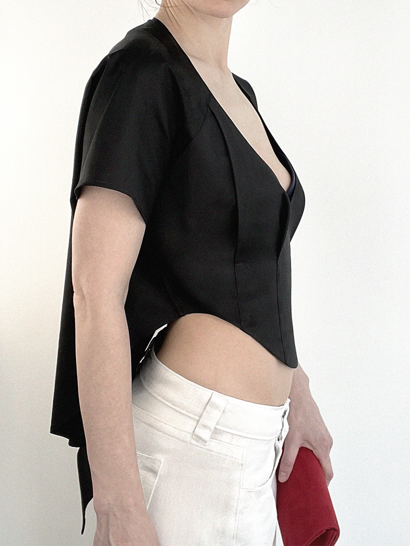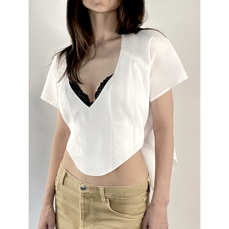 Thought to balance sexiness and casualness, this piece underlines the female curves with its profound neckline and delicate corset.