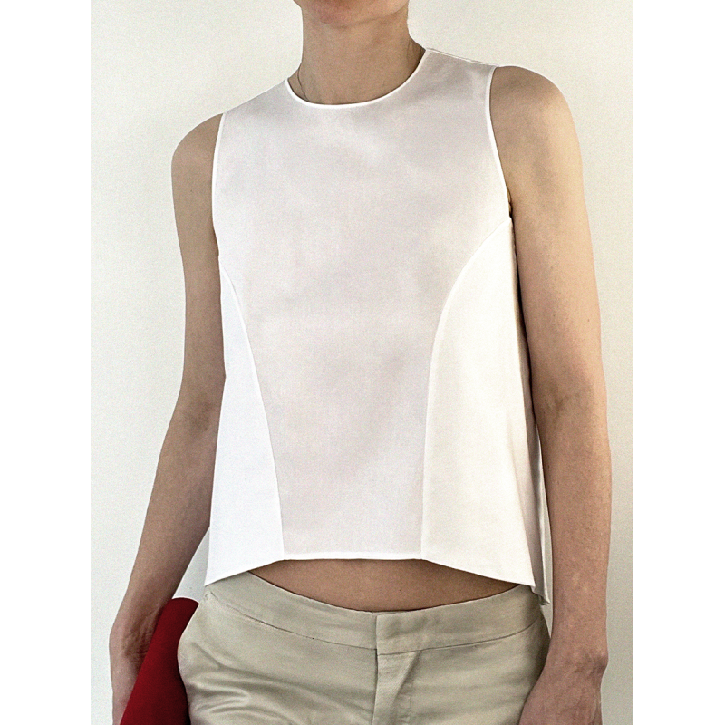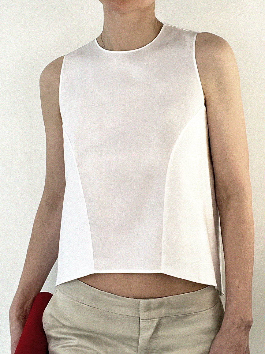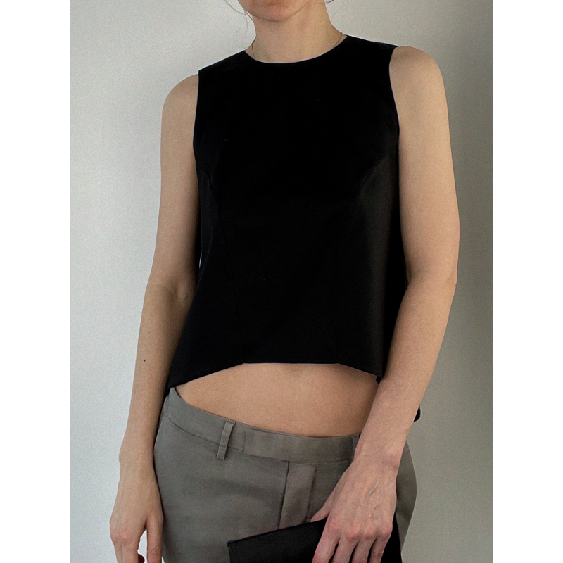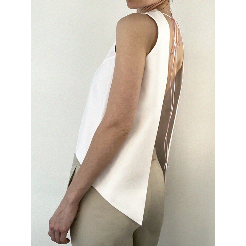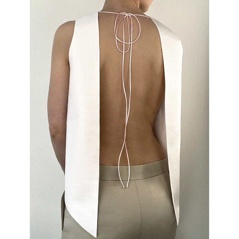 Crewneck top with a wide open back.
